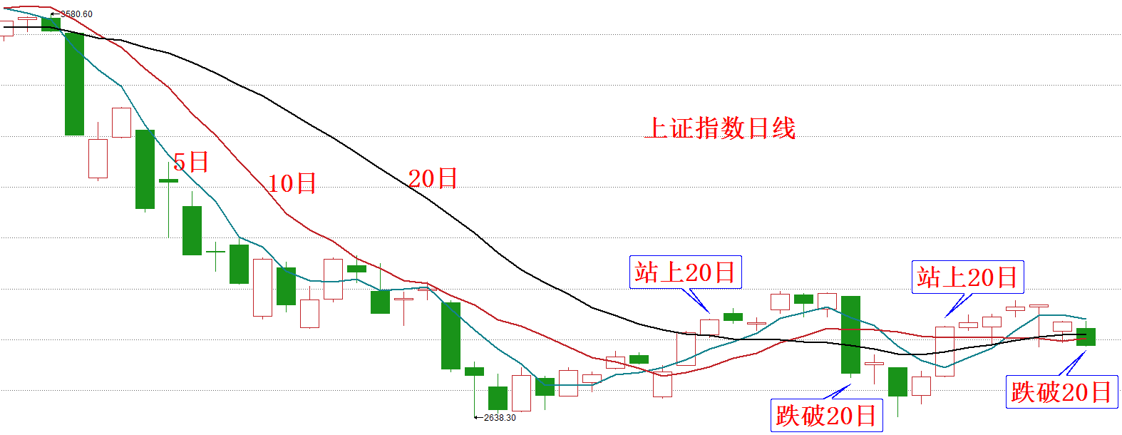 大概懂一些技术分析的人都学过均线,而均线系统的基本口诀就是“站上均线买入,跌破均线卖出”,尤其许多人喜欢通过20日均线进行分析。可是以近期走势而言,每次你在指数站上20日均线时买入基本都会买在相对高点,每次你在指数跌破20日均线时卖出都卖在低点。所以很多人搞到最后就糊涂了,技术分析这玩意到底有没有用,听别人事后分析好像头头是道,为什么我用起来就频频被打脸呢?其实,所有技术分析方法,包括你曾听说过的均线、趋势线、布林线以及MACD、KDJ、RSI等都是评价系统,是投资者进行分析解读的工具。如果投资者寄希望于仅凭画线或指标就能为你提供买卖决策,通常都会发现在某一阶段特别灵,而在另一阶段频繁打脸。是技术分析本身的错吗?还是你技术分析学得不精?打个不一定十分恰当的比方,技术分析的各种画线和指标就像是武林秘籍中的招式,可是你只学招式就能够成为武林高手吗?这显然是不够的,你还得学内功,还得学心法,这样才能将招式的威力发挥出来。不仅如此,你还应该要增长见识,能够判断自己的对手是什么水平。如果对方水平比较低,那你怎么打都容易赢,就好像牛市做股票怎么都是赚钱。如果对方是顶级高手,那就算你武功已经颇有长进,也最好别贸然前去挑战,就好像熊市做股票总是容易赔钱。如果对方水平和你差不多,那就要寻找有针对性的克敌招式。譬如现在处于筑底阶段,肯定是均线反复纠结,而股价围绕均线来回跳跃的,此时再死守着“站上均线买入,跌破均线卖出”的教条,又焉能不败?不是均线系统的分析方法不好,也不是你背的口诀不对,而是放在当下使用不合适。