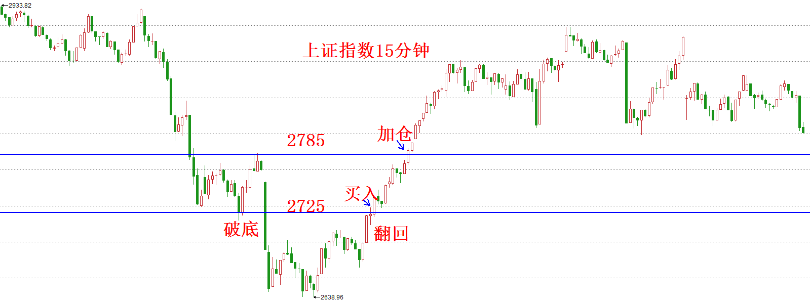 我们此前提到,2785点一线是破底翻走势的颈线突破位,在放量突破时可以酌情加仓。如果你是严格按照破底翻的纪律来操作的话,之后无论指数如何震荡,只要未曾有效跌破此位置之前都算多头结构,可以继续持股。一旦指数跌破此位置,则需要酌情降低仓位。