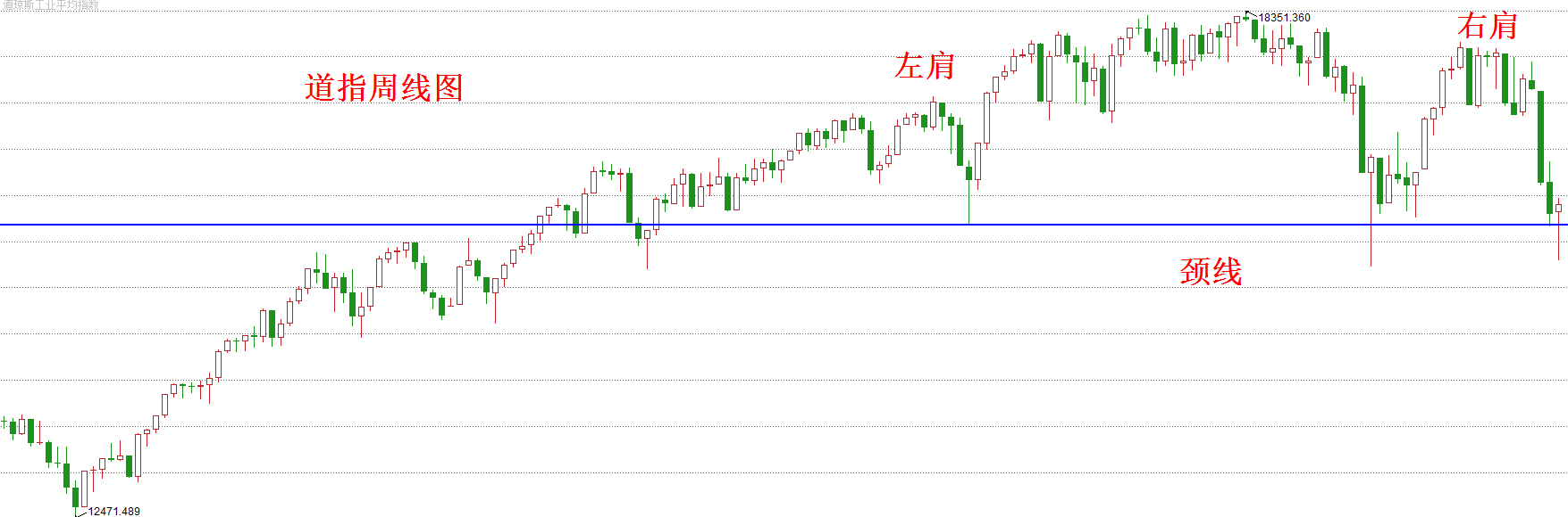 在那篇文章中,我们提到“道指周线图上很像是构筑头肩顶。它从2009年3月涨到2015年5月已经涨了六年多,现在是用一年多的时间构筑头肩顶,接下来要再有效跌破颈线,那可真是深不见底。”