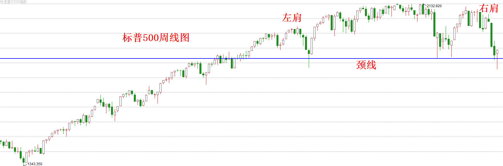 索罗斯说他已经做空标普500指数,那我们再来看下面这张标普500指数的周线图: