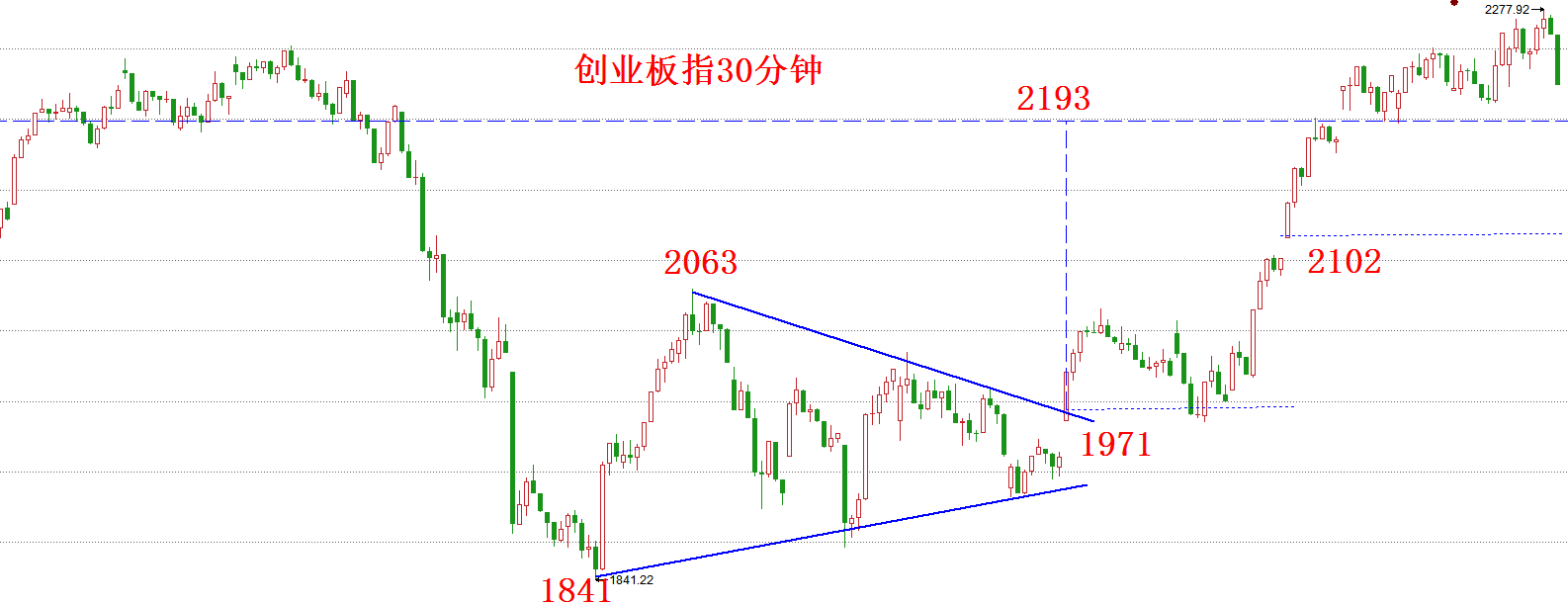 再来看下面这张创业板指30分钟线图