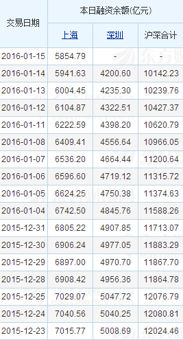 自8月见底以来,融资余额的最高值是去年11月20日的12189亿。12月以来的最高值是在12月24日的12080亿,之后就一路呈下跌之势,如下表所示: