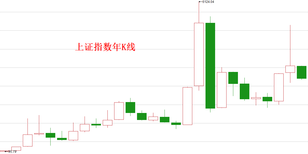 下面这张是上证指数有史以来的年线图: