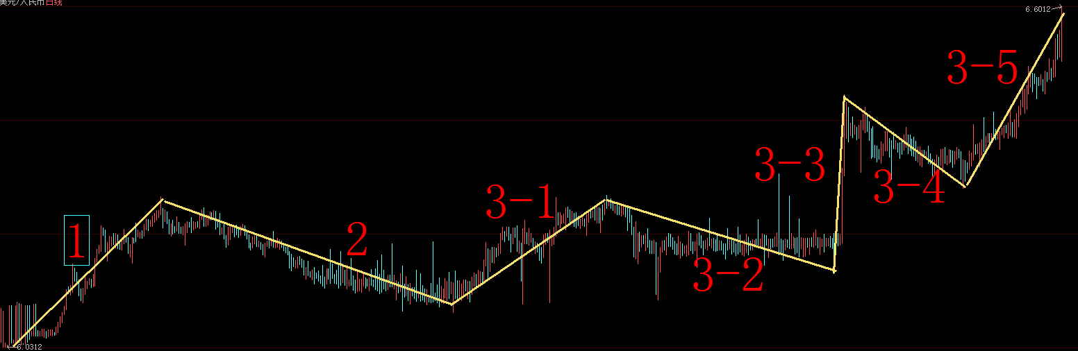 以波浪的角度而言,现在似乎是在走第三大浪的第五小浪。也许接下来再走个第四大浪和第五大浪,人民币就算是贬值到位,而股市也可以回升了。