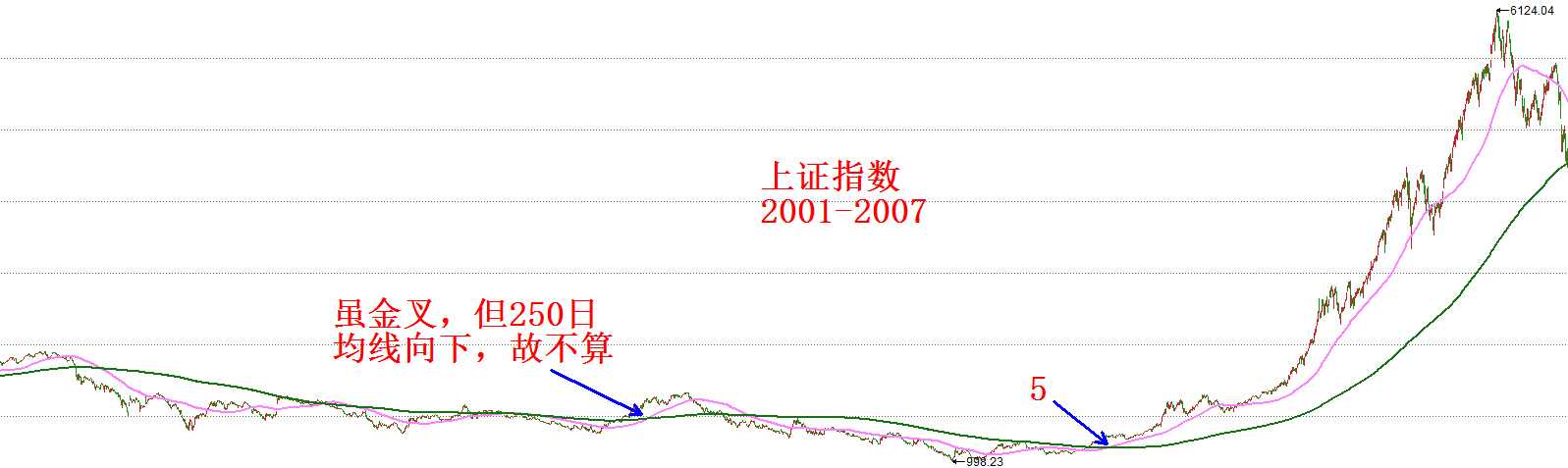 从上面五张图可以清楚看到,纵观上证指数20多年的历史,每当250日均线向上而后60日均线与之金叉时,都能有相当不错的走势。你以为这样的中期均线和长期均线会是随随便便金叉的么?