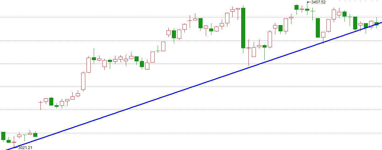 这张图昨天已经向读者展示过了,图中的蓝线就是上证指数自9月29日的3021点以来的上升趋势线。看着今天的盘面运行,姚尧真心觉得主力操盘水平确实是高。10月23日双降的消息出来后,全球股市都是大涨的,唯独A股高开低走。今天美联储宣布暂不加息,全球股市都是大涨的,同样唯独A股是高开低走。这似乎给了市场投资者一种深深的挫败感,仿佛3400点上方就是压力重重,什么样的利好都无法冲过去。