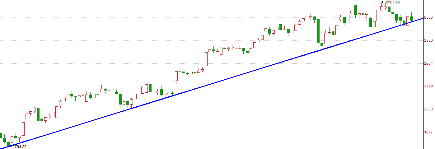 再说创业板。与主板相同的,创业板指一样是高开低走,一样是收盘小幅上涨,一样是成交量大幅萎缩,一样是盘中一度跌破趋势线但很快又收了回来。所以,我们认为创业板指的走势也将与主板趋同。如下图所示: