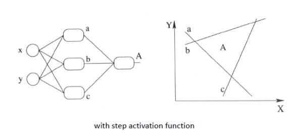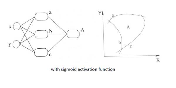 同理,扩展到多个神经元组合的情况时候,表达能力就会更强~对应的组合图如下:(现在已经升级为三个非线性感知器在组合了)
