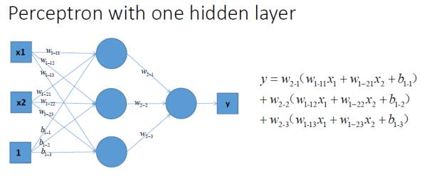 好吧,很容易能够看出,我给出的样本点根本不是线性可分的,一个感知器无论得到的直线怎么动,都不可能完全正确的将三角形与圆形区分出来,那么我们很容易想到用多个感知器来进行组合,以便获得更大的分类问题,好的,下面我们上图,看是否可行: