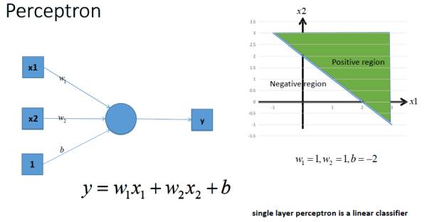 得到,那么该感知器实现预测的功能步骤如下,就是我已经训练好了一个感知器模型,后面对于要预测的样本点,带入模型中,如果y>0,那么就说明是直线的右侧,也就是正类(我们这里是三角形),如果y<0,那么就说明是直线的左侧,也就是负类(我们这里是圆形),虽然这和我们的题目关系不大,但是还是提一下~