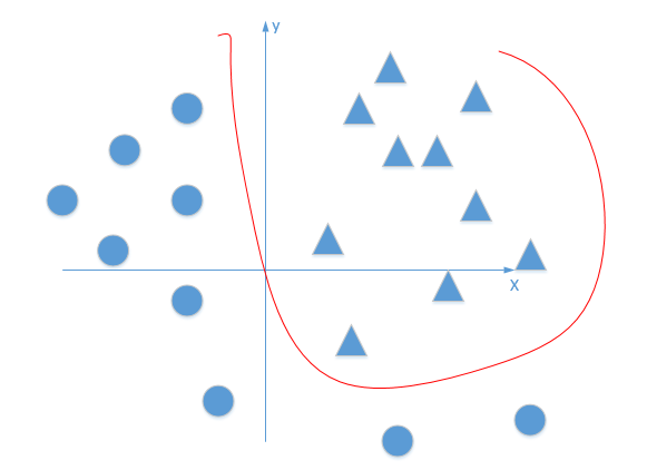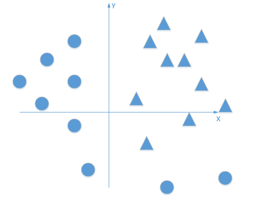 首先我们有这个需求,就是二分类问题,如我要将下面的三角形和圆形点进行正确的分类,如下图: