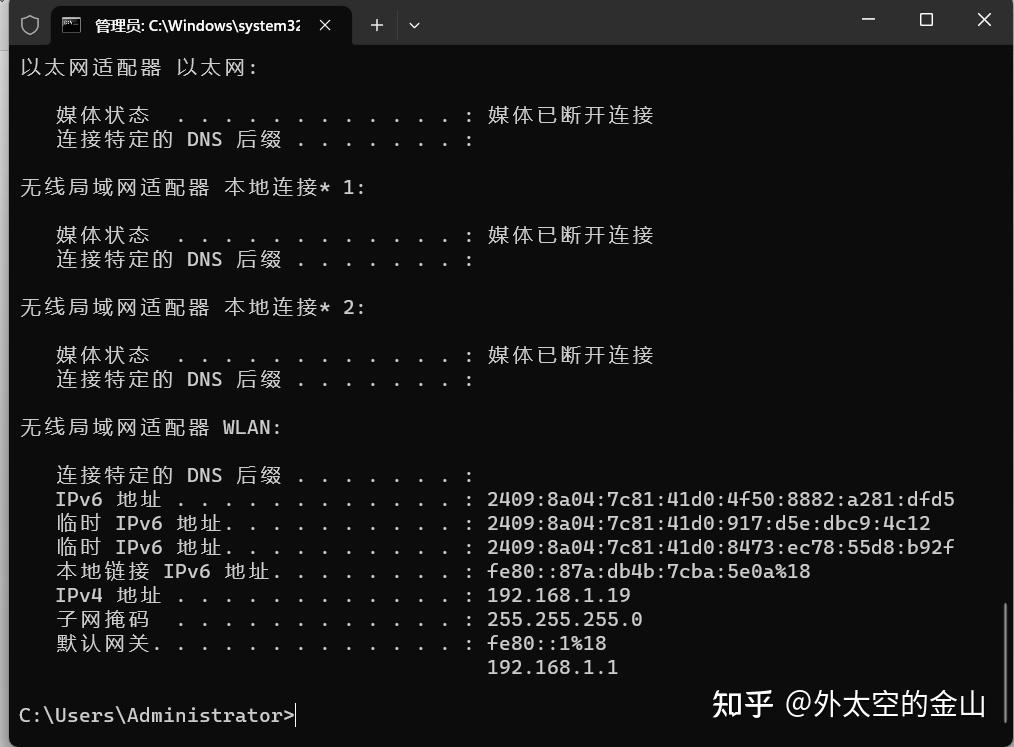 还记得你第一步显示的ipconfig的本地网关吗?那里面有一个内网的网关,还有一个外网的网关。