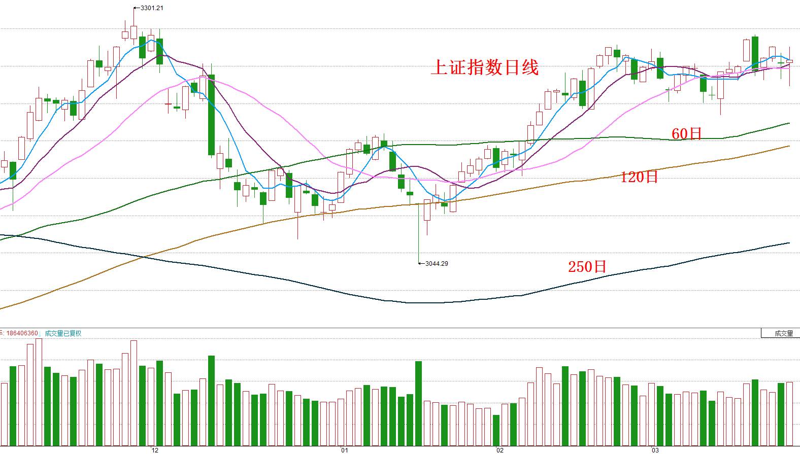 今日上证指数上涨3.33点,收盘报3248.55点,成交量为2582亿元,如下图所示: