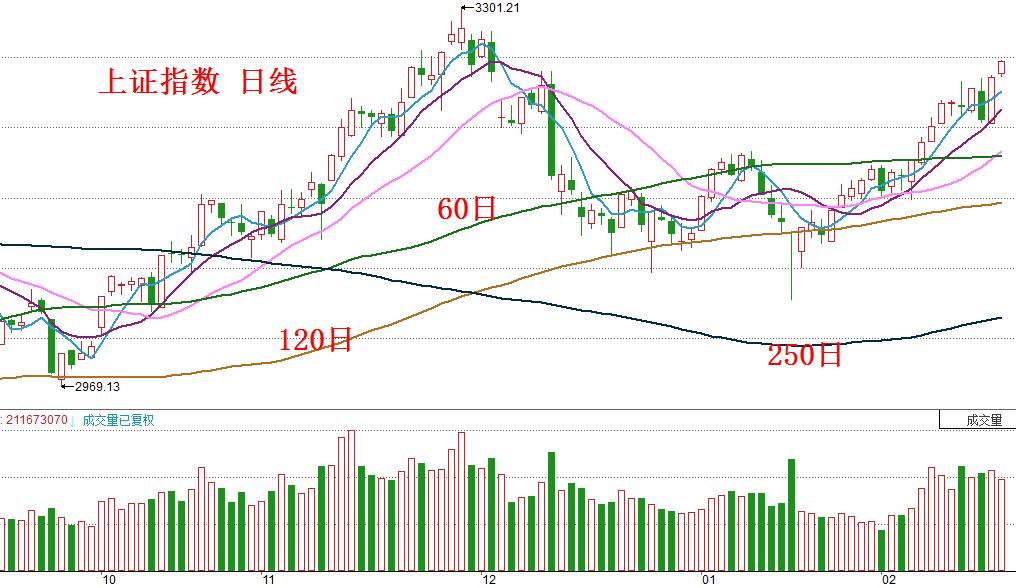 大盘今天继续上涨,均线系统也已构成多头排列,但我们必须警惕的是,今天上证指数成交量是萎缩的。过去两个多月来,姚尧几乎每天都会在文章中告诉读者,3301点是肯定会过的,即便大盘跌到最悲观的时候也是这种说法。有些读者不相信而后取消关注了,有些读者虽然留下来但也一直是半信半疑,现在距离3301仅有50点的距离,想来绝大部分读者应该是都相信的了。姚尧现在需要强调一点,我们仍然维持3301必过的观点,但重要的是要观察指数以何种方式过。读者现在仍可继续维持七成左右仓位不变,但如果接下来过高时的成交量未能有效放大的话,那么就不能因市场媒体纷纷唱多而急于加仓,反倒是要酌情考虑逢高减仓了。这个我们到时候再具体分析,现在先给读者提个醒,市场普遍悲观时我们一直保持积极的心态,接下来如果市场亢奋,我们也要始终保持头脑清醒。