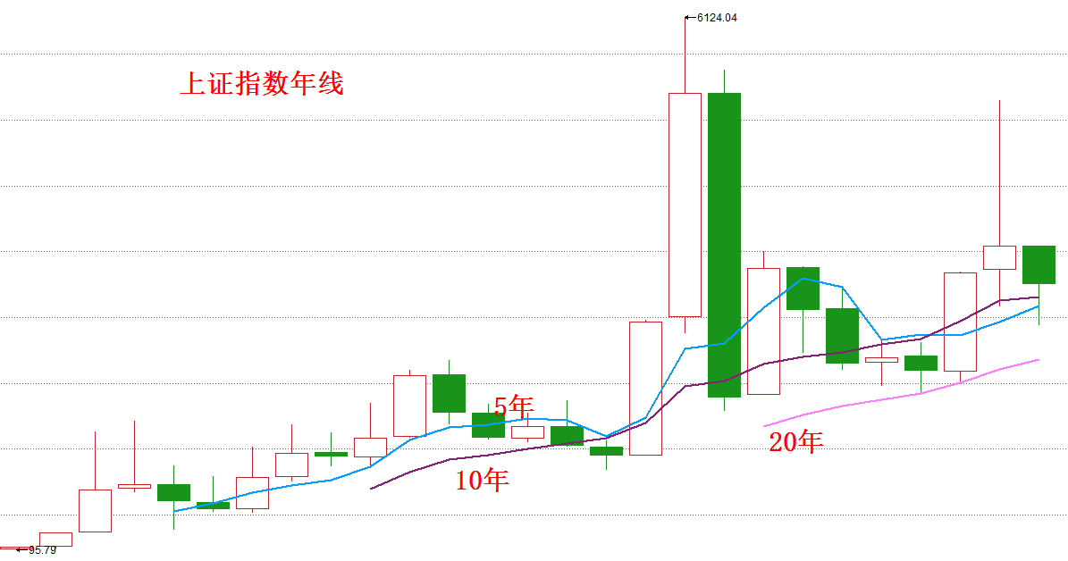 2016年已经结束,我们现在可以来审视年线了。请看下面这张上证指数年线图: