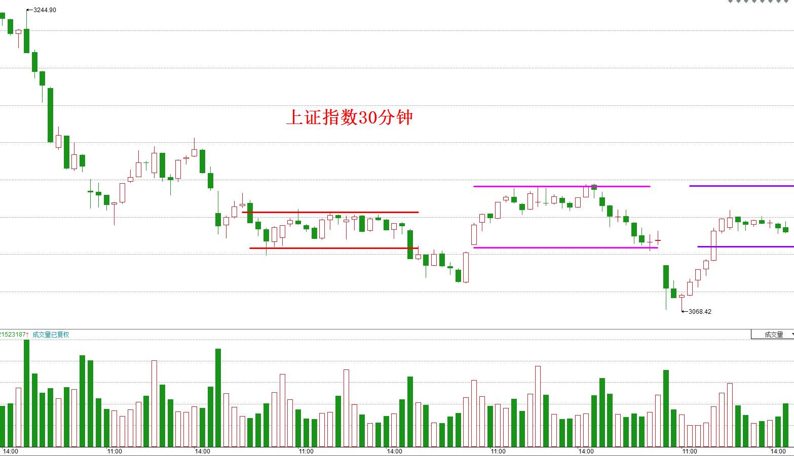 可以看到,自昨天上午开始,上证指数的30分钟线连续拉了六根阳线,所以今日以横盘的方式消化昨日抄底的获利抛压,此走势在结构上也非常合理。现在上证指数仍然在矩形区间内运行,如能向上突破3140点,则新一轮行情应该就正式启动了。在操作上,我们依然保持定力,维持八成仓位不动。