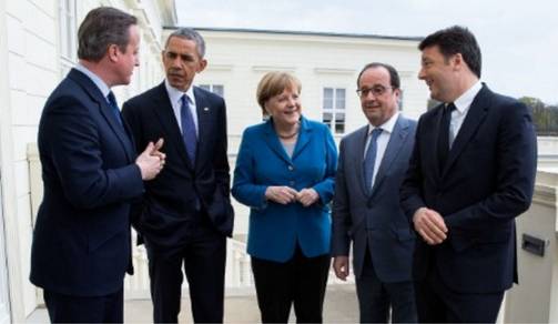 这张照片拍摄于今年的4月25日,西方世界最重要的五位国家领袖在德国汉诺威举行五国首脑峰会,纵论天下大势的发展。他们当时无论如何不会想到,在接下来半年多的时间里,他们会相继成为失败者。除了中间那个女人还在苦苦挣扎外,旁边四个男人已经被彻底扫入历史的垃圾洞了。