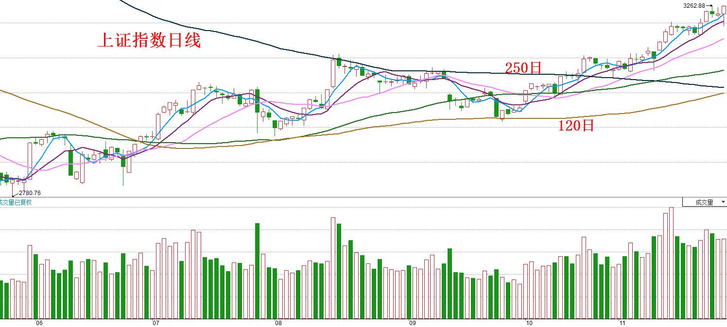 以上是我周五收盘时的想法,至周六又传出深港通确定在12月5日开通的新闻,那么周五后来的上涨也有可能是消息灵通人士积极买入所致。不出意外的话,明日上证指数必将再次创出反弹新高,这样成交量就尤为关键了。如果明天成交量能够收出放量阳线,成交量至少在3000亿元之上,则基本可确立市场涨势无忧。倘若明日成交量无法收出放量阳线,则将再次出现量价背离。长线看好的观点固然从未改变,只是有必要提醒下短线投资者不可因大盘上涨就贸然追高,我们仍然以六成仓位为宜,稳健的投资者甚至可逢高将仓位降至五成。