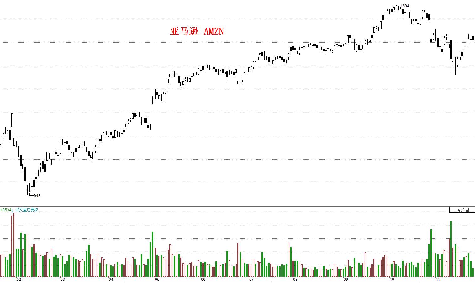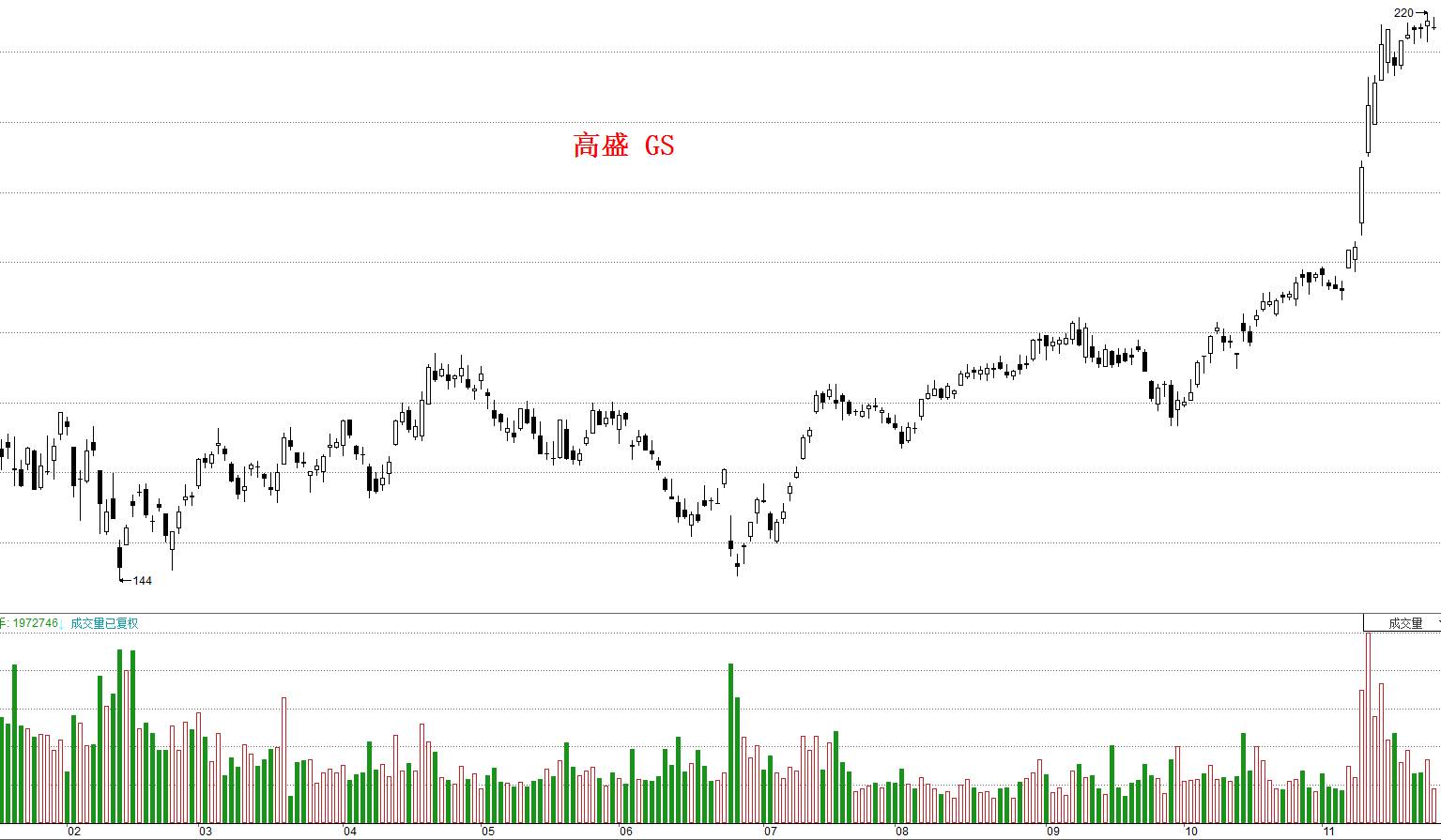 大家知道,道指相当于中国的上证50,代表美国的权重股;纳指相当于中国的创业板指,代表美国的科技股。通过对比上述两张图,我们可以发现,这一波美股上涨道指无论在幅度还是力度上都远大于纳指。接下来,我们再看几档个股: