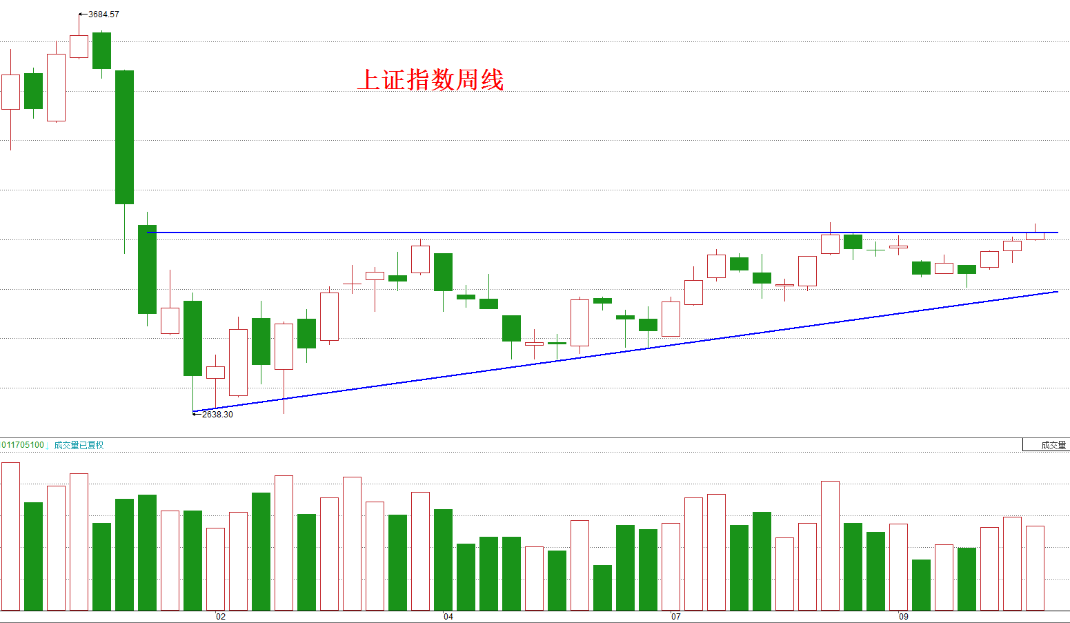 请看下面这张上一轮牛市启动前的周线图: