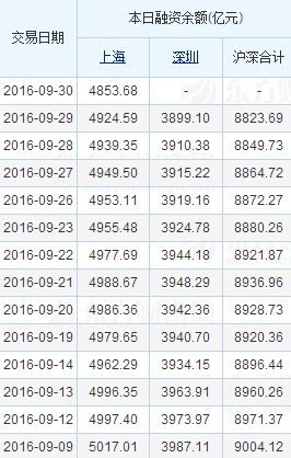 由于深圳的数据还没有出来,那我们就只分析上海的数据。从9月9日到9月29日总共13个交易日,融资余额从5017亿缩减至4924亿,减少了93亿。再除以12,可得出平均每天减少7.75亿元。