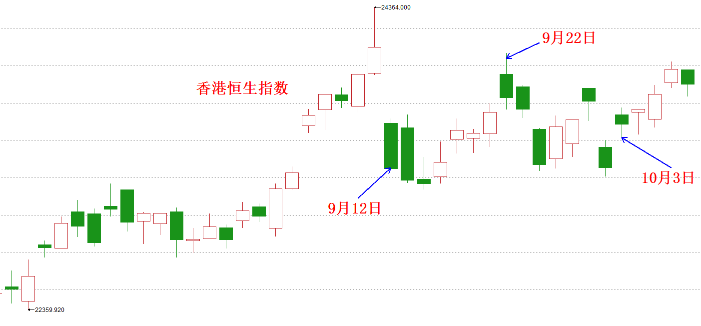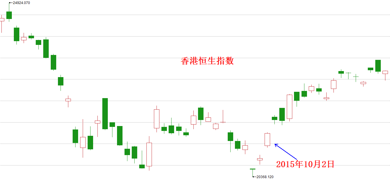 下面这张是去年国庆节前后香港恒生指数的走势图: