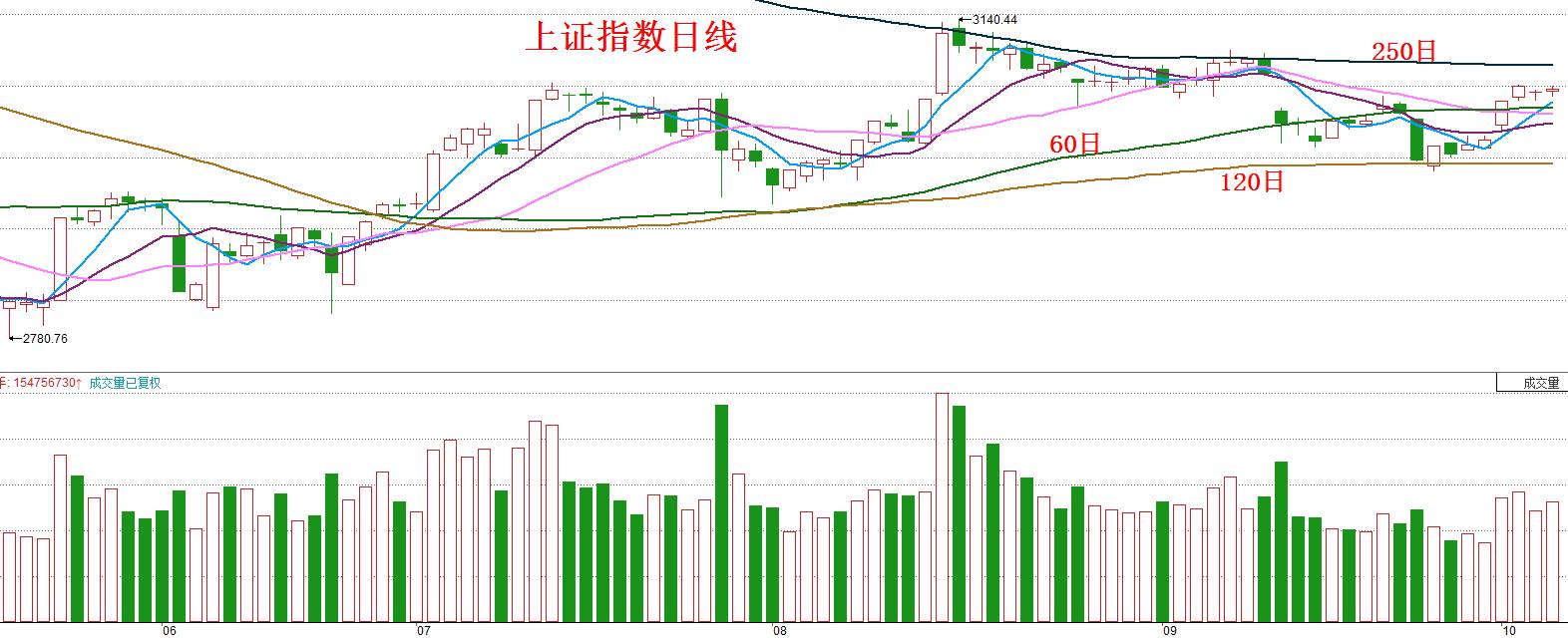 在周四晚的文章中,姚尧提到“上证指数短期内出现剧烈变动的概率不高,上方的压力位在9月12日跳空缺口的3078点, 支撑位在10月10日跳空缺口的3015点。”周五的走势印证了我们的观点。下面这张是上证指数周线图: