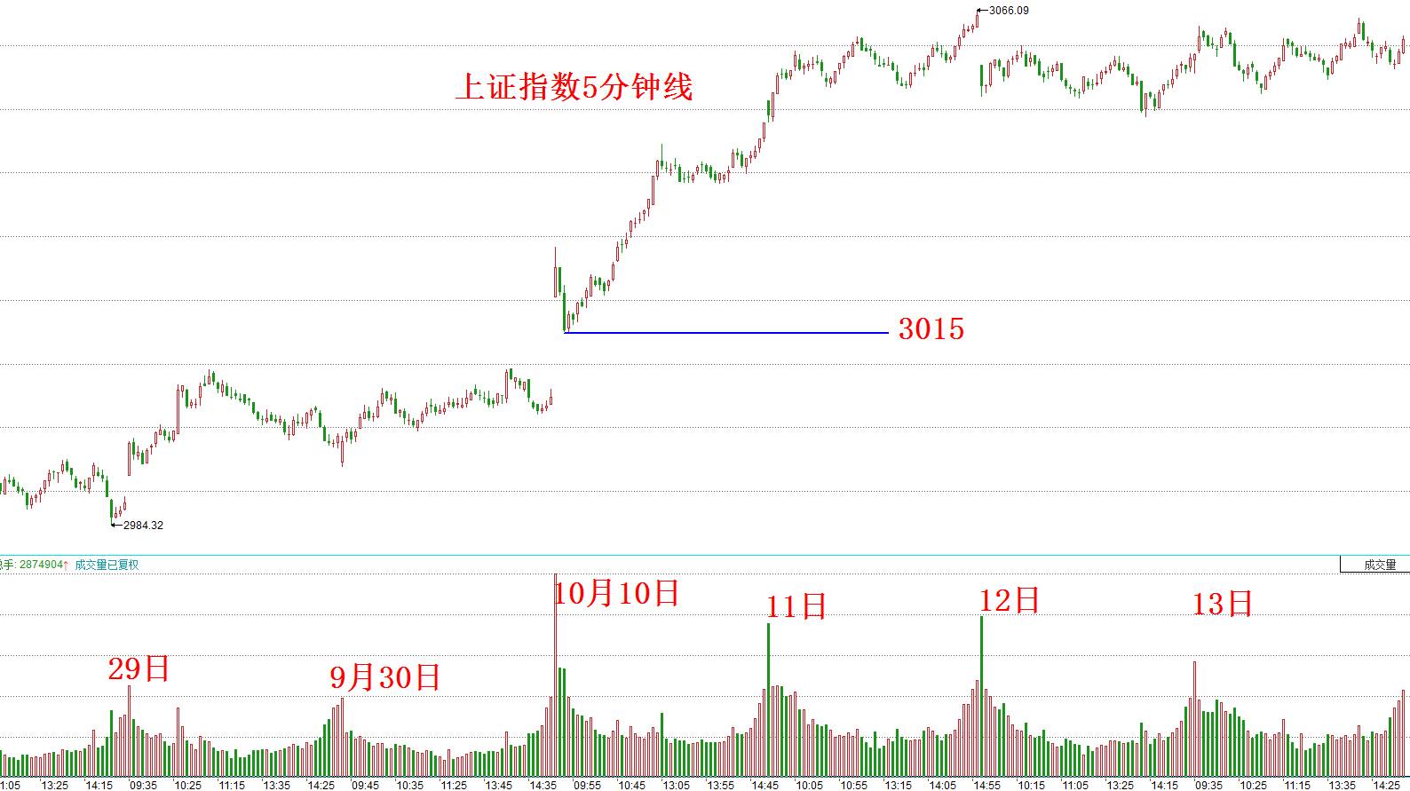 国庆节后,上证指数跳空高开,略作回调后就一路上拉至3050点之上才出现连续几天的震荡整理。也就是说,那些在节前割肉出局的资金,想要再买回来的最低位置就是10日的最低点,即3015点。如果说主力资金是刻意在节前制造恐慌气氛以洗盘的话,那么重新跌回到3015点下方,让散户重新上车的概率就不太高了。因此,我们认为上证指数短期内想要跌破3015点的概率也非常低。