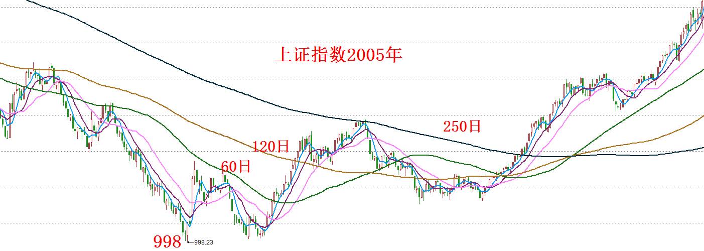 下面给大家看几张在2005年和2014的大底部时期均线从纠结到发散的样子: