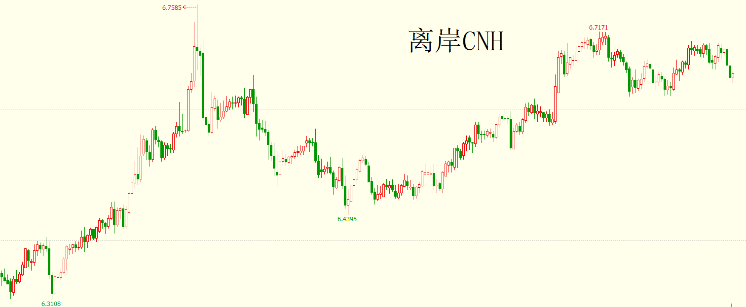请看下面这张美元兑离岸人民币(向上为贬值)的走势: