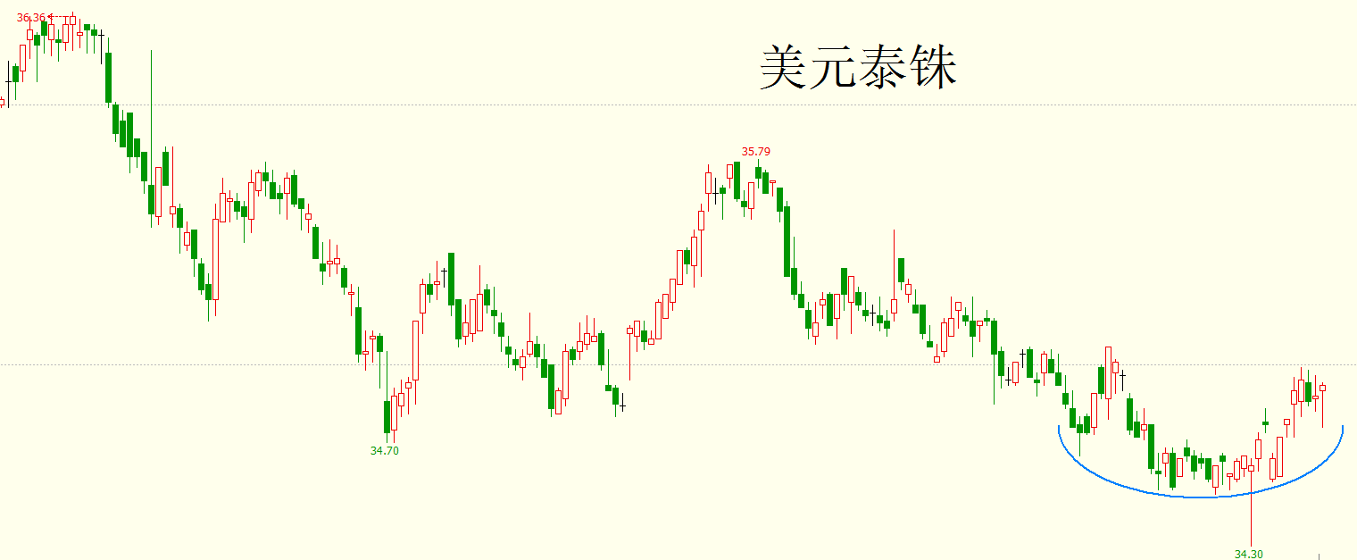 形态上看,美元泰铢现在很有可能是在构筑圆弧底。就算未来不是圆弧底,但也基本可以看出,自从9月2日的长下影线之后,美元泰铢前期的下跌趋势已经被扭转,现在正在筑底阶段。