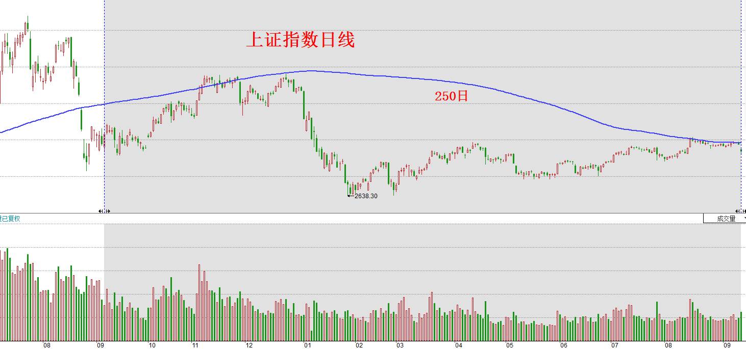 可以看到,今天250日均线计算的日期,就是从去年的9月8日到今年的9月12日,如下图所示: