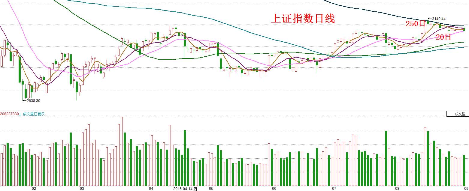 今天上证指数收盘价在3063点,20日均线的位置在3066点,指数跌破20日均线一点点。我相信,现在市场上有许多分析师都在讨论20日均线,说只要站稳20日均线就如何如何,站不稳20日均线又如何如何。不过在姚尧看来,20日均线的价值已经不大了,因为60日均线和120日均线已经拐头向上,其中60日均线已经到了3000点左右,距离相差20日均线也仅有60点的差距。就算真的跌破20日均线的话,也会很快在60日均线处获得支撑。所以我认为20日均线已经不具备太多决策价值,反而是具有忽悠价。也就是说,如果主力足够狠心的话,刚好就利用许多技术分析人士看重20日均线的心理,选择在盘中快速杀破20日均线,进一步制造恐慌的市场氛围,迫使投资者割肉止损出局。在我看来,现在就是牛市的初期,仓位只增不减,其实我自己现在手里的仓位已经达到九成了。昨天有读者留言说,以前讲过的突破颈线买入的方法,在近期操作起来好像感觉不太灵了。其实,这也是时机不对所导致的,因为现在大盘的走势就是在你被无休止的窄幅整理磨得很烦躁时突然上涨,当你刚因为两个阳线而跃跃欲试时,它又陷入无休止的窄幅整荡整理。我认为,市场主力资金已经完全准备好了,现在除了每天来回折腾洗盘外,可能也在等最高层的发令枪。在未来的几个月内,将陆续有G20、美联储加息、人民币纳入SDR、深港通、美国大选等一系列政治经济大事,最高层对此肯定是做好各种规划的,A股市场也势必会成为国际政治经济博弈的重要筹码。纯粹从技术的角度而言,A股已经差不多就具备大涨的基础了,等最高层哪天一发令,指数就随时可以向上拉阳线。而在最高层下令之前,恐怕也就只好这样无聊的震来震去了。