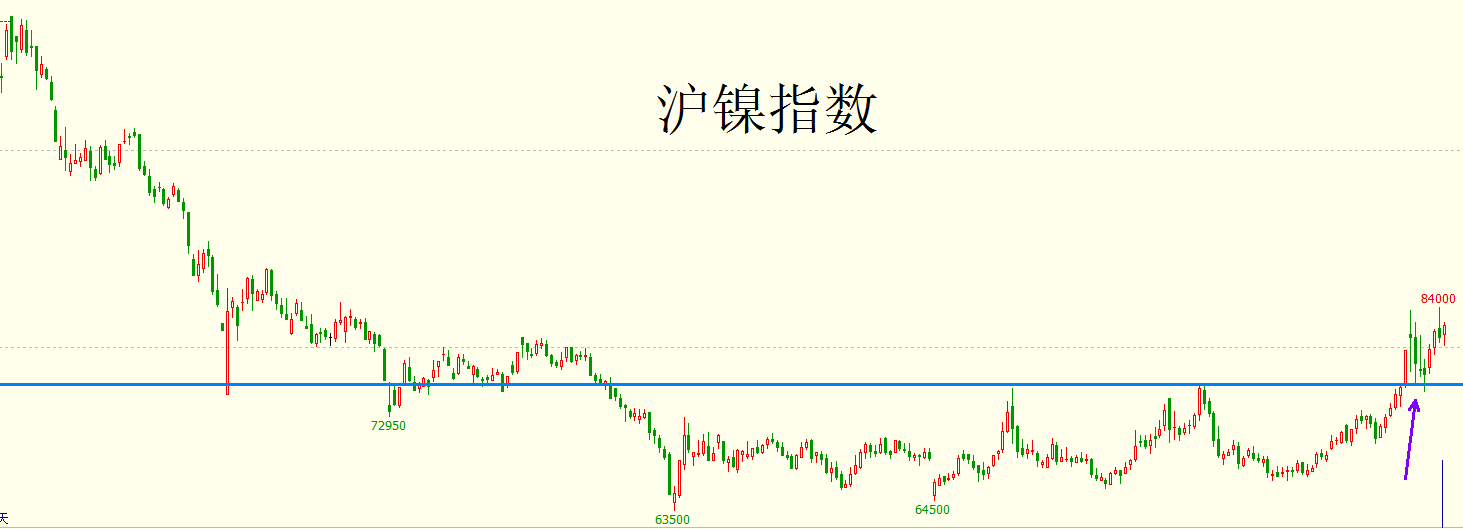 一般来说,只要大盘出现上涨,做股票总是比较轻松容易。但为了避免个别读者出现只赚指数不赚钱的悲剧,姚尧还是从技术面为大家提供一条的选股思路。这次选取的案例不是股票而是期货,所以不担心你们跟了。请看下面这张沪镍指数的日线图: