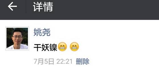 可以看到沪镍指数与上证指数一样,也是用半年时间做了个大底部。7月4日这天,沪镍指数大涨突破颈线位。7月5日,沪镍指数高开后继续上攻,之后就出现震荡回落,并逐渐跌至颈线位。此时,姚尧刚把英国脱欧时买入的白银多单全部平掉,于是便在5日晚上开始逐步做多沪镍,当时还随手发了条朋友圈,如下图所示: