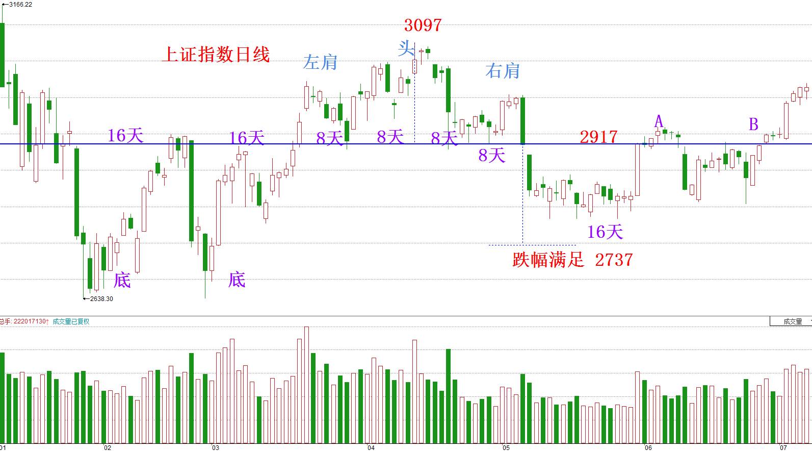 今日上证指数小幅震荡,收盘时仅下跌0.44点,收盘报3016.85点,成交量为2702亿元,如下图所示:
