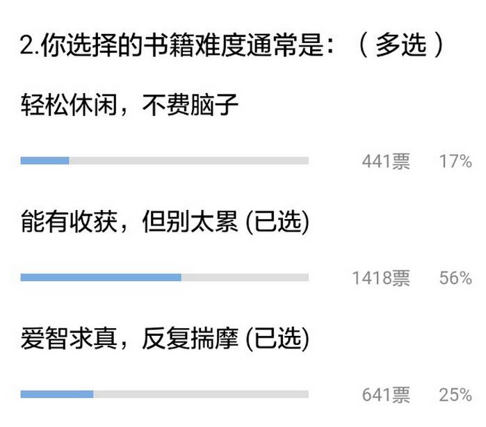 也正是基于同样的原因,所以有高达75%的读者在选择书籍时希望读起来不要太累: