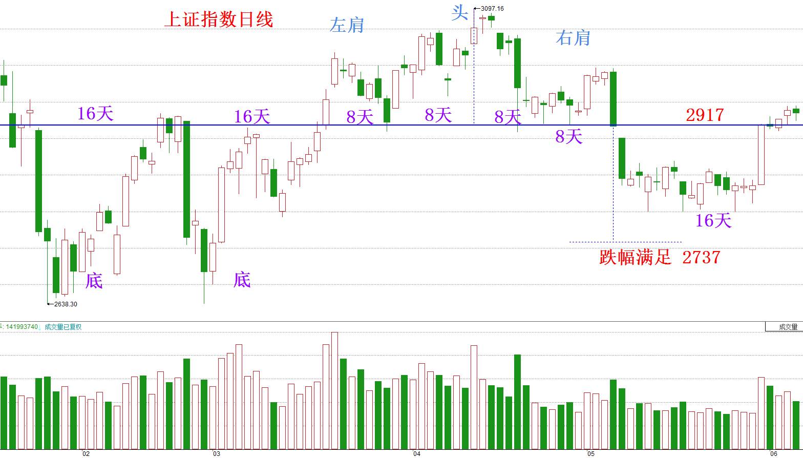 今日上证指数继续维持窄幅震荡,收盘时下跌4.58点,收盘报2934点,成交量则缩小至1724亿,为5月31日长阳以来的新低,如下图所示: