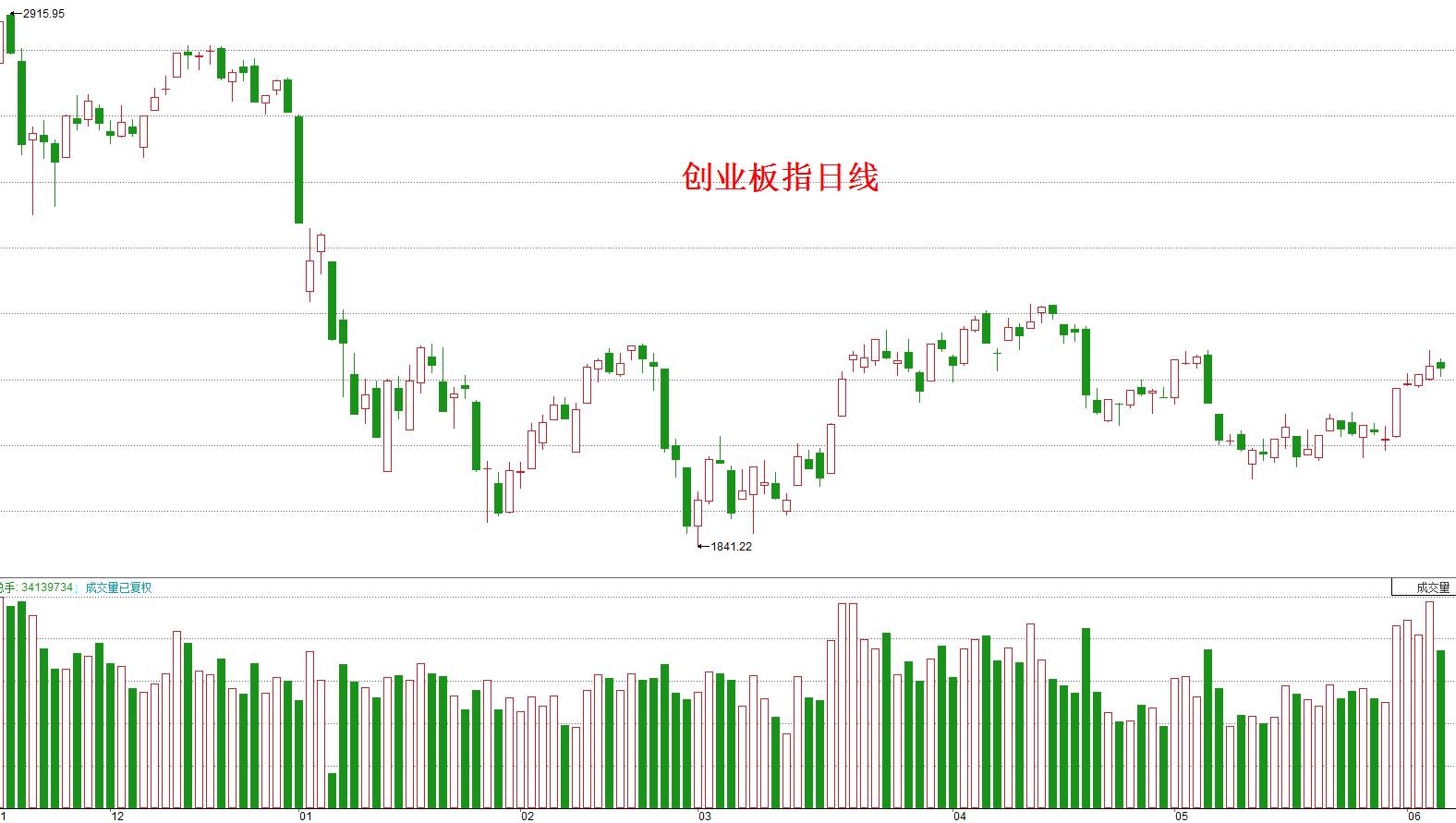 可以看出,创业板指在昨日创出近几个月天量后今天迅速萎缩,同样是5月31日以来的最低成交量。加之指数反弹的点位已经进入前期套牢密集区,是以我们有必要警惕创业板指短期有回调的可能。与前述上证指数类似,读者可以在创业板指逐步回落至2100点一线时加仓,也可以等指数再次放量上攻时加仓。