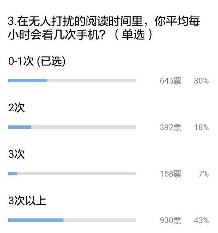 也正是基于同样的原因,所以有高达70%的读者在无人打扰的阅读时间里,会每小时看2次以上的手机: