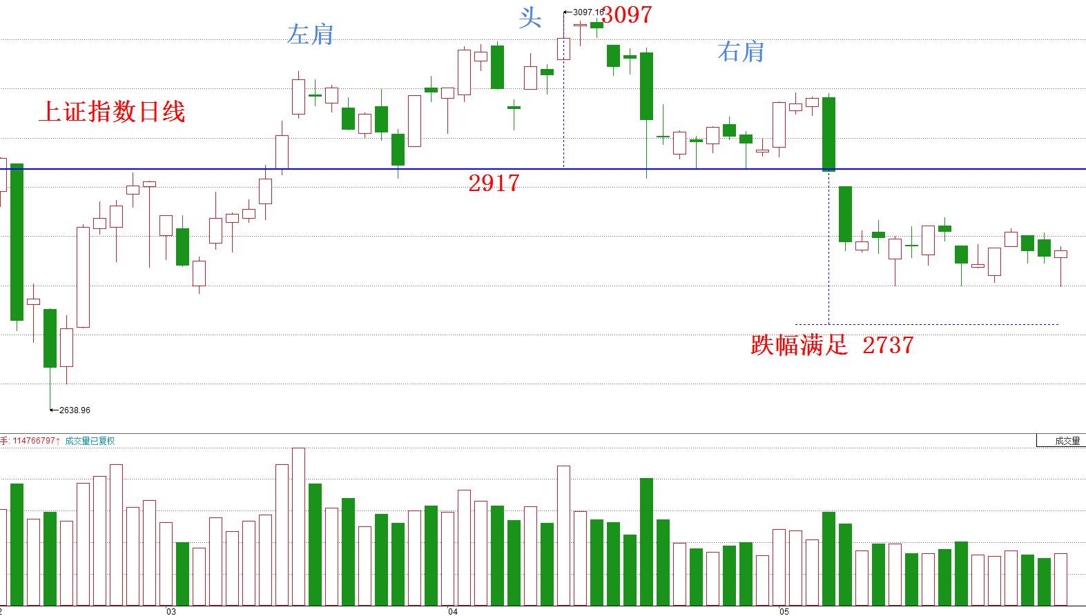 大家都还记得:三月以来,我们认为上证指数是在构筑双底,颈线位在2934点,涨幅满足位在3230点。可是到了四月初,由于上证指数成交量迟迟未能有效放大,我们就开始建议读者降低仓位了。在《4月25日股市前瞻》中,姚尧明确提出两个观点:第一,上证指数这次可能不会涨到3230点的涨幅满足位;第二,上证指数可能会走成头肩顶。这些,都已为后来的走势所证明。