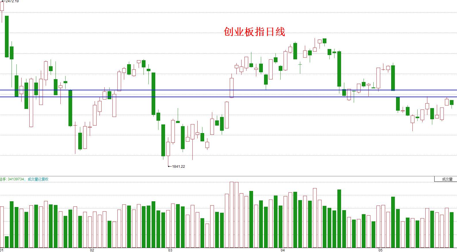 其实,沪深融资余额创出新低这个数据我昨天就知道了,之所以没跟大家说,是因为创业板指刚好反弹到缺口附近,怕有读者头脑发热去追高。果然,今天创业板指未能继续封闭缺口就转而下跌了,如下图所示: