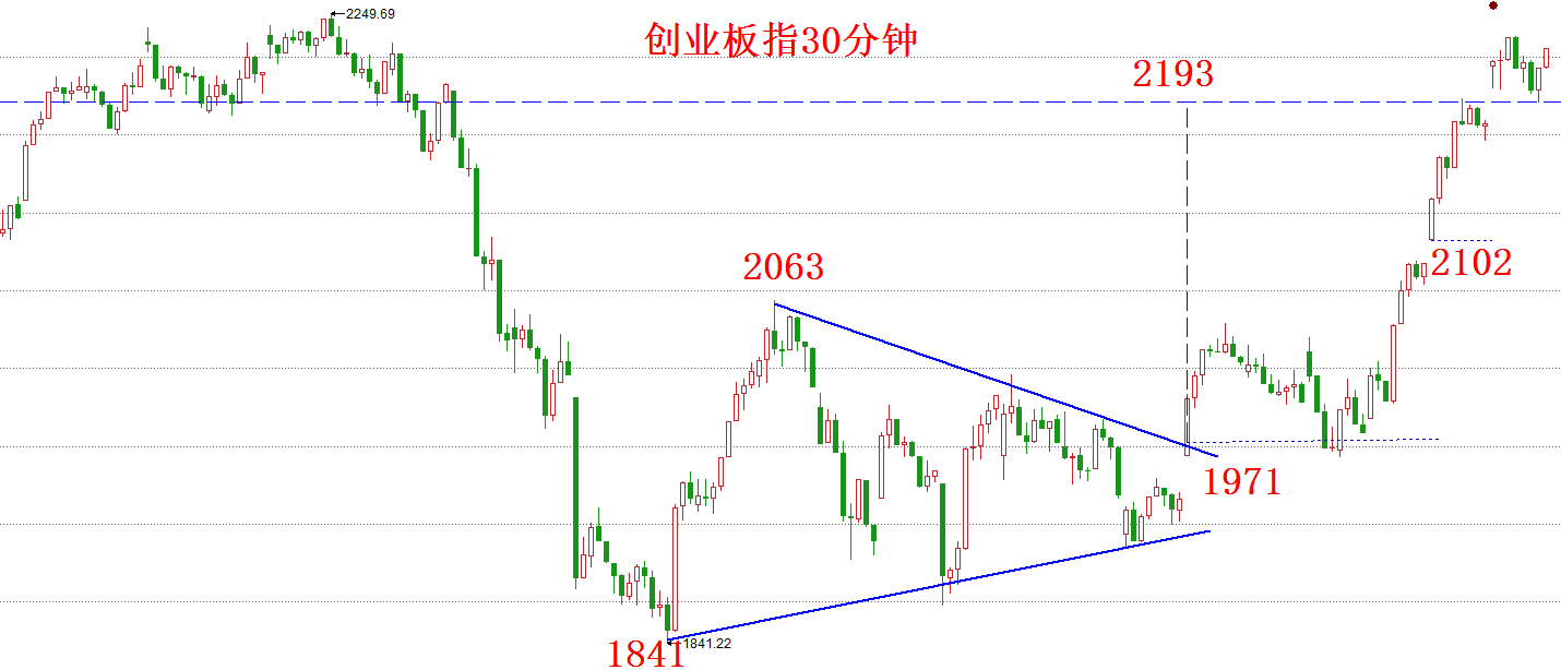 如今,上证指数已经突破颈线位,而创业板指距离颈线位尚有一步之遥。从中长期看,这个位置是肯定会过的,但短期内是否会过,特别是明天能不能就过,这个还真不好说,至少我现在不敢下断言,不排除在关前回落整理的可能。