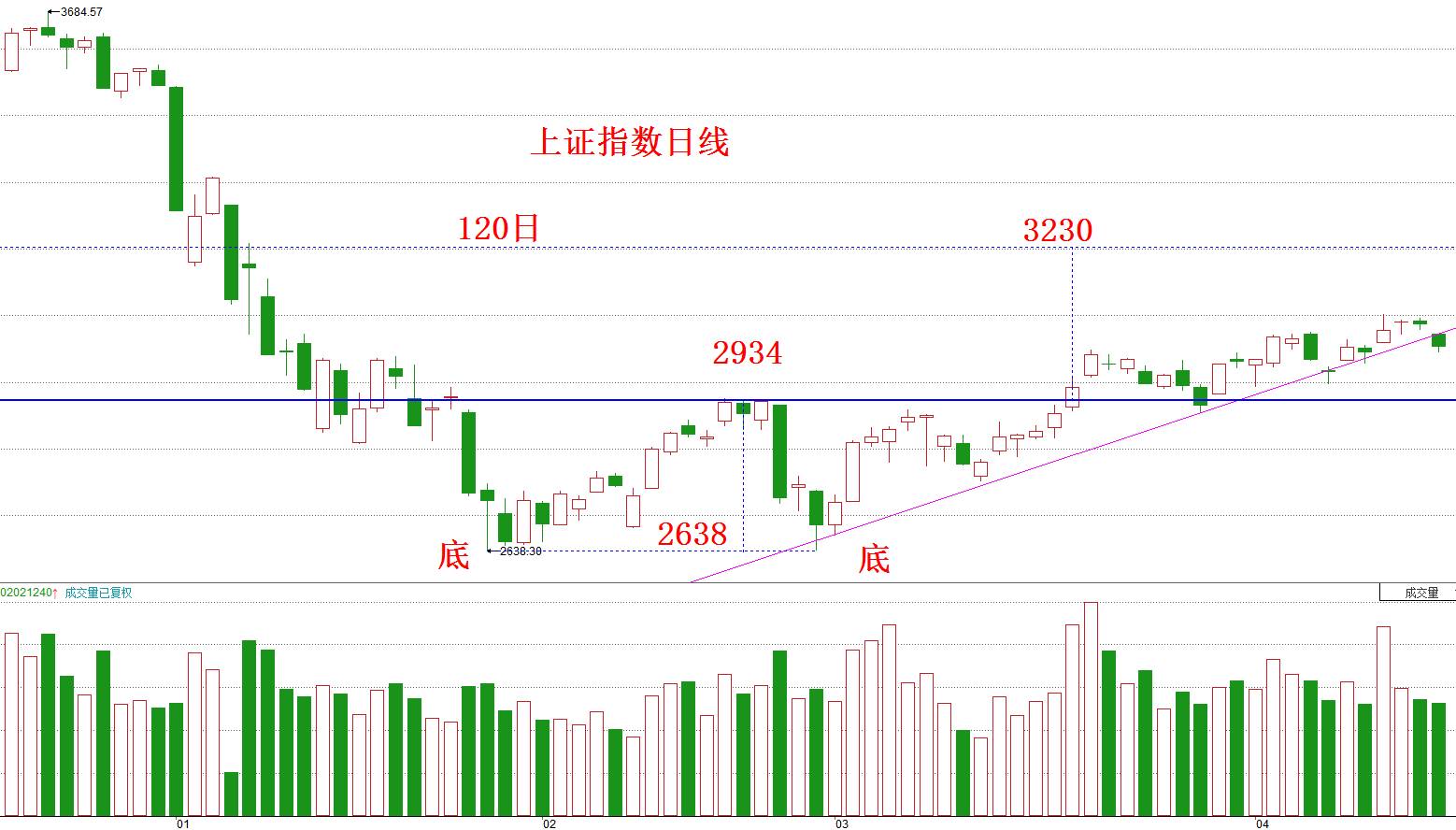 从中线上看,上证指数仍然没有跌破2934点的颈线位,故仍可继续上看3230点。但从短线而言,今天已经跌破上周三开盘价3041点,不知短线投资者是否止盈止损。另外,上证指数自2月29日最低2638点以来有一条上升趋势线,如上图粉色线所示,今天开盘即跌穿此趋势线,且收盘时亦未能收复,这也足以成为短线投资者的警示。对于像我这种前期减仓出局的人来说,此处依然参与价值不大。必须再三说清楚的是:我不是说大盘短期一定不会涨,更何况今天在二十日线获得支撑,明天反弹也是极有可能的。我只是说,我现在没有把握,不想玩。如果你有把握,你有本事赚钱,我仍然继续为你高兴。